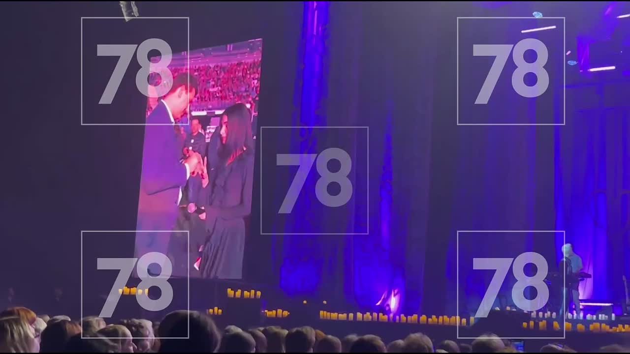Сам певец сделал паузу в выступлении, чтобы всё внимание публики досталось парам. Что может быть приятнее, чем получить предложение от своего возлюбленного именно 8 Марта? О Байкале — ни слова.