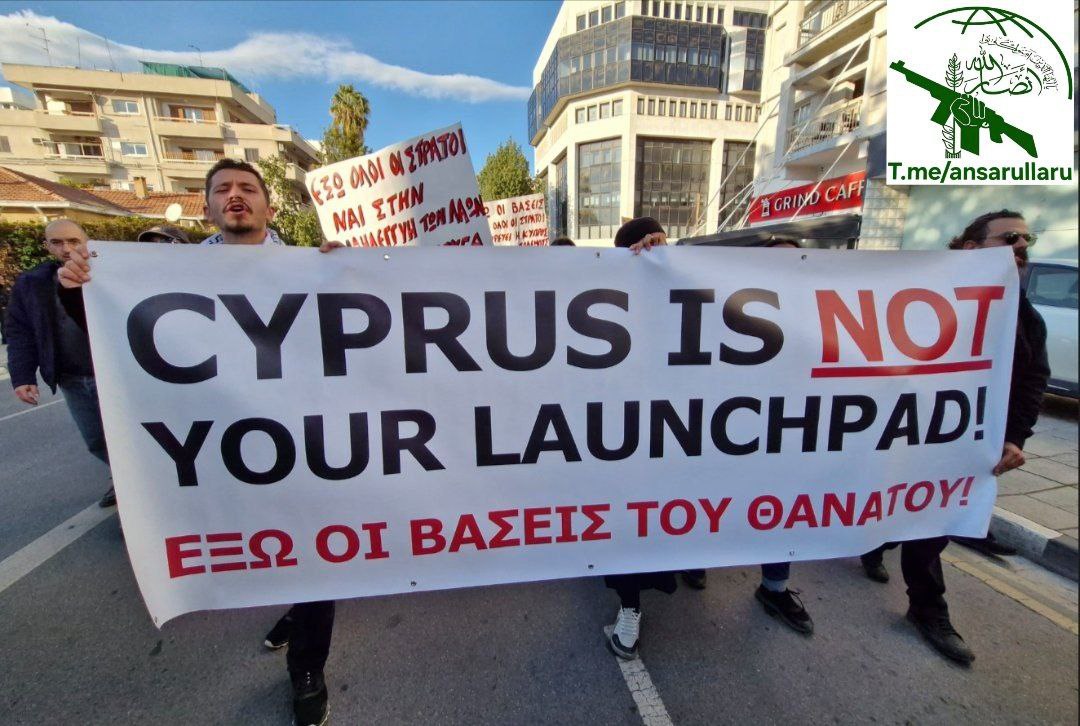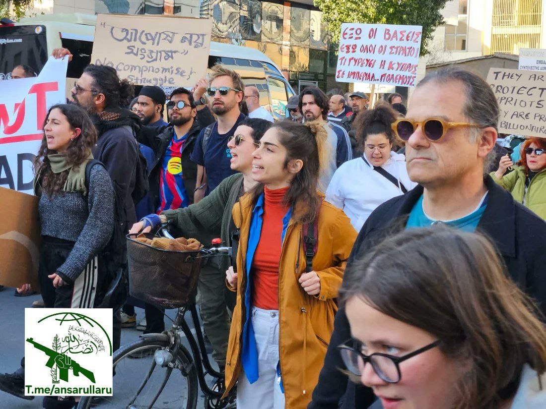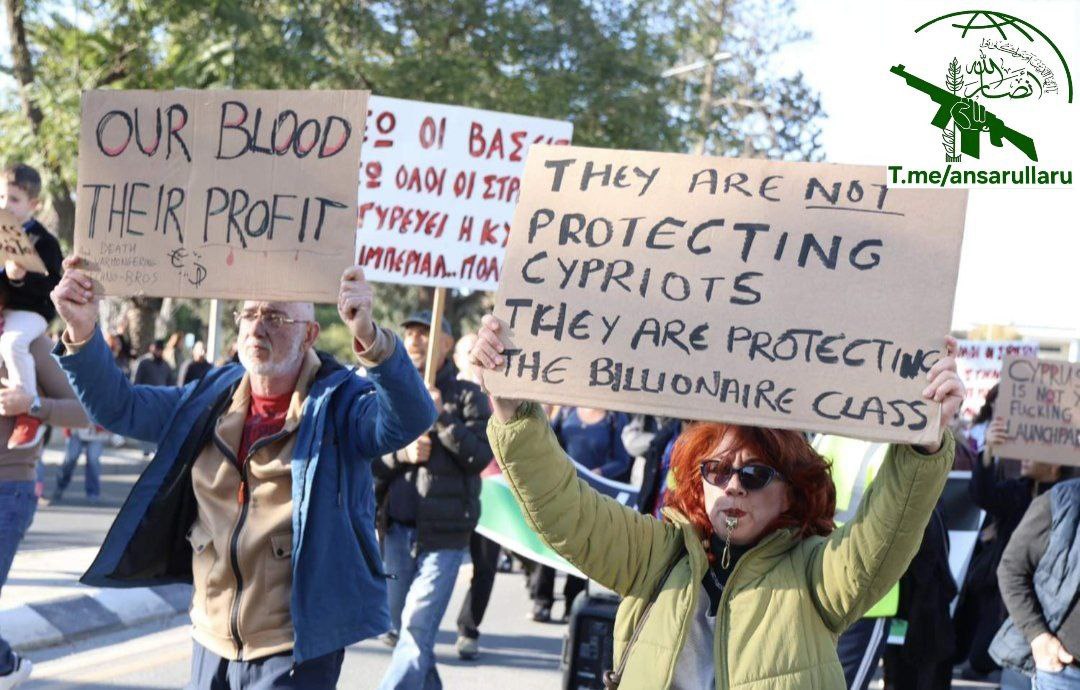 Протестующие отказываются превращать свою страну в платформу для войн, называя британское присутствие "базами смерти" и обвиняя кипрское правительство в "соучастии в агрессии".