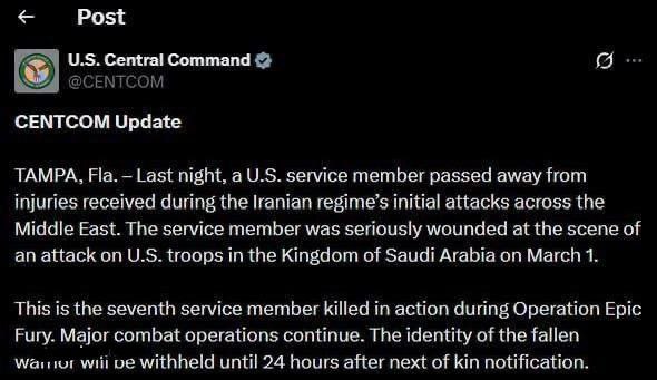 Согласно официальному заявлению Центрального командования США (CENTCOM), это первый американский солдат, погибший на территории Саудовской Аравии в ходе текущих событий.