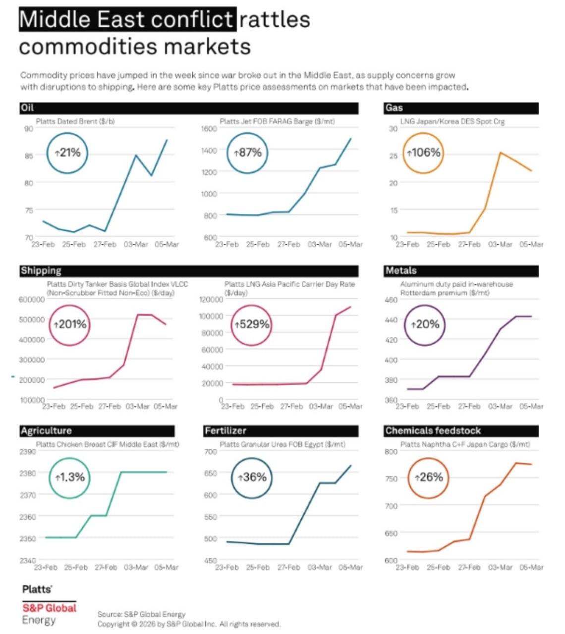 С начала эскалации зафиксирован резкий рост стоимости на ключевых рынках: