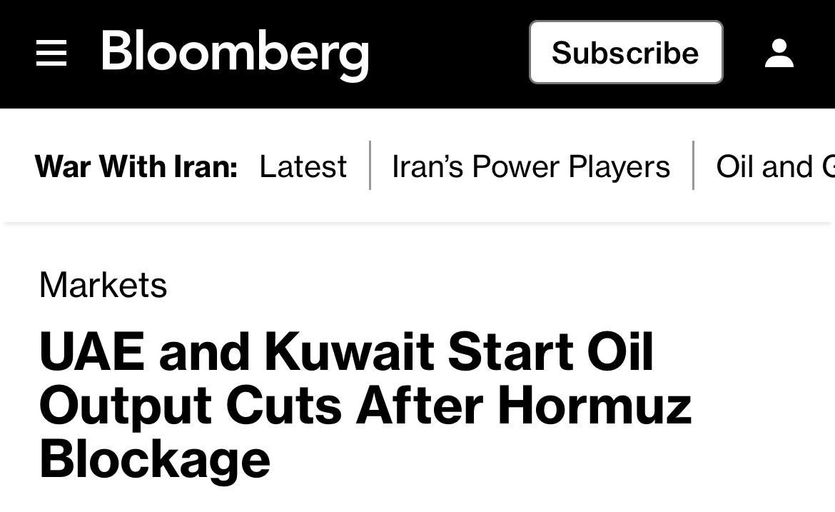 Ведущие нефтяные компании ОАЭ и Кувейта начали сокращать добычу нефти из-за блокирования Ормузского пролива, которое нанесло удар по энергетическим рынкам и глобальным поставкам, — констатирует Bloomberg
