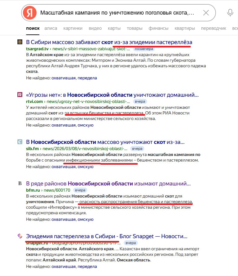 Мне скинули сообщение, что в моей родной Новосибирской области крупные агрохолдинги ликвидируют конкурентов в лице частного сектора и прикрываясь инфекцией заставляют забивать крупный рогат скот без компенсации.
