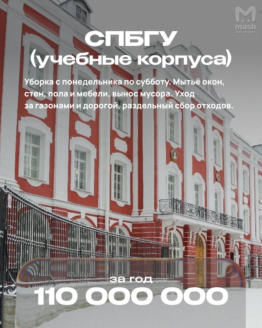 Отдраить СПбГУ стоит 110 лямов рублей в год. Что за золотые швабры моют его и Эрмитаж? Почём уборка Мариинского театра и других знаковых мест в Питере — чекайте в MAX.