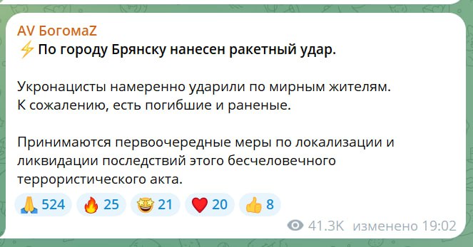 Ракетный удар по Брянску...