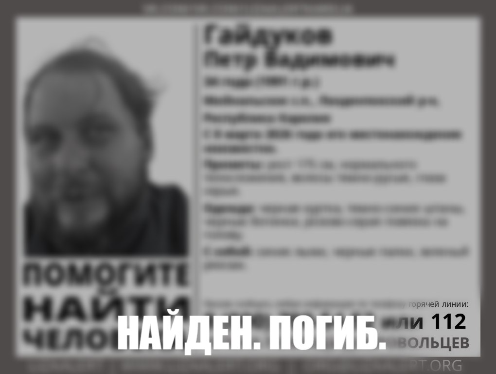 Гайдуков пропал 8 марта в Лахденпохском районе Карелии — ушел в лес на лыжах. К его поискам подключились «ЛизаАлерт» и МОО «Спас Северо-запад», работали на аэролодке и двух снегоходах.
