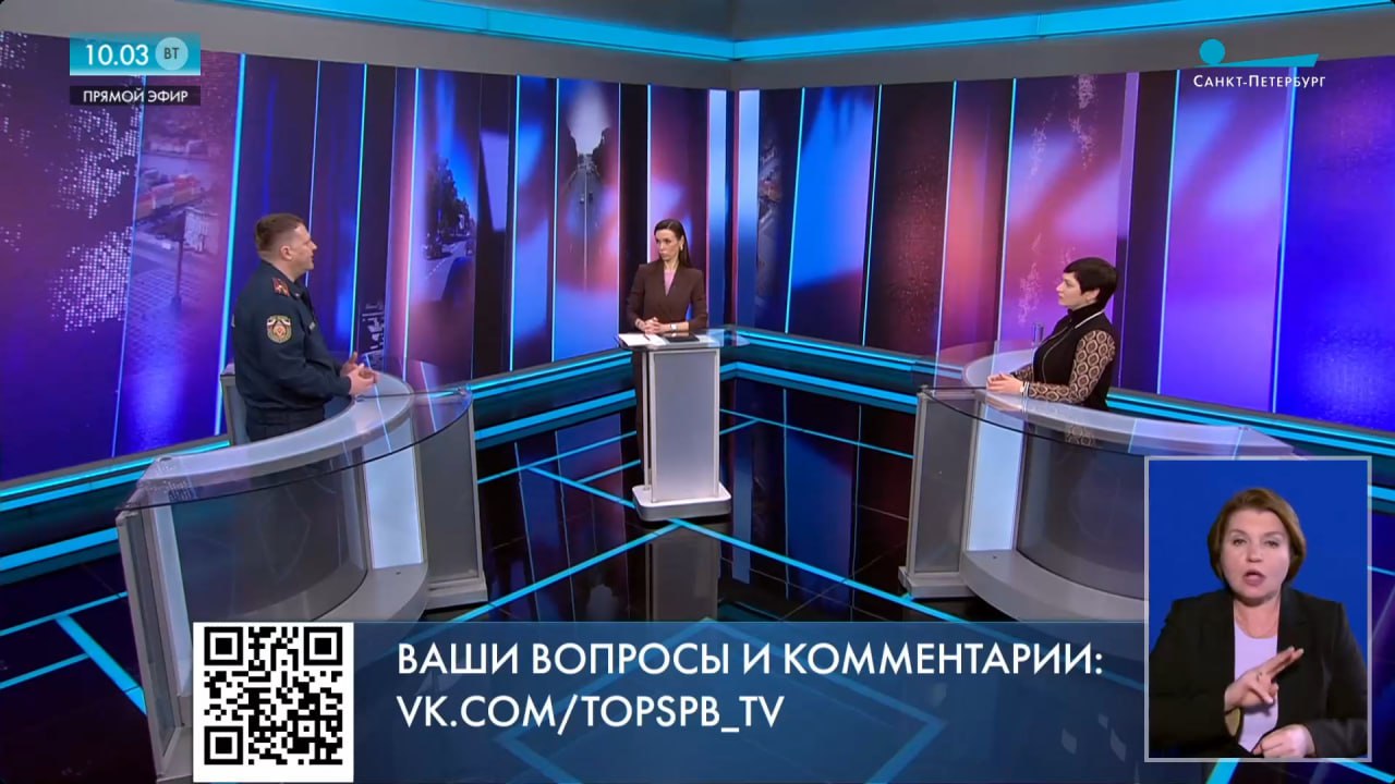 На вопросы ведущей Ирины Степановой ответили: начальник пресс-службы Главного управления МЧС России по Санкт-Петербургу Андрей Литовка и врач-психотерапевт, кандидат медицинских наук Влада Титова.