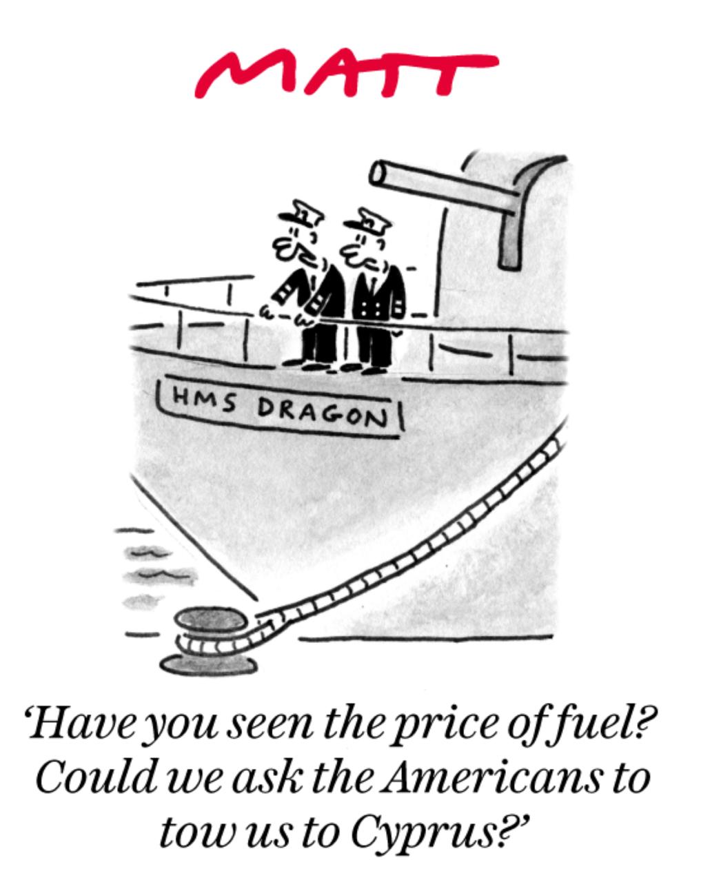 The Daily Telegraph продолжает издеваться над неспособностью британского флота отправить свой единственный находящийся в строю миноносец ПВО «Дракон» даже для защиты собственных баз на Кипре.