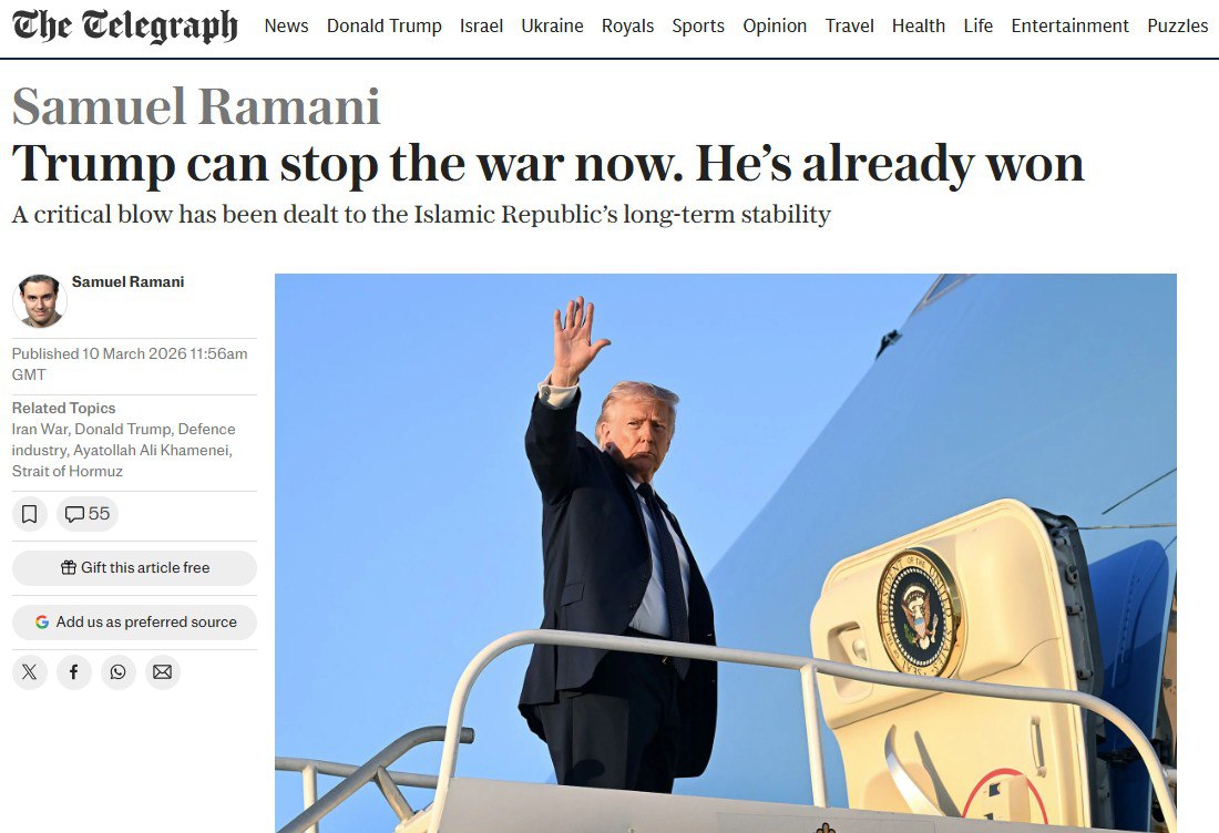 ‘Трамп может остановить войну прямо сейчас. Он уже победил’ – The Telegraph готовит почву для заявлений из Вашингтона.