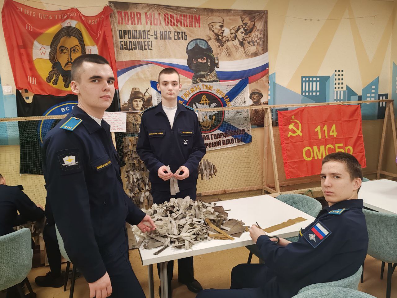 Кадеты IT-школы ВАС сплели маскировочные сети для бойцов в ходе акции «Плетем Победу»