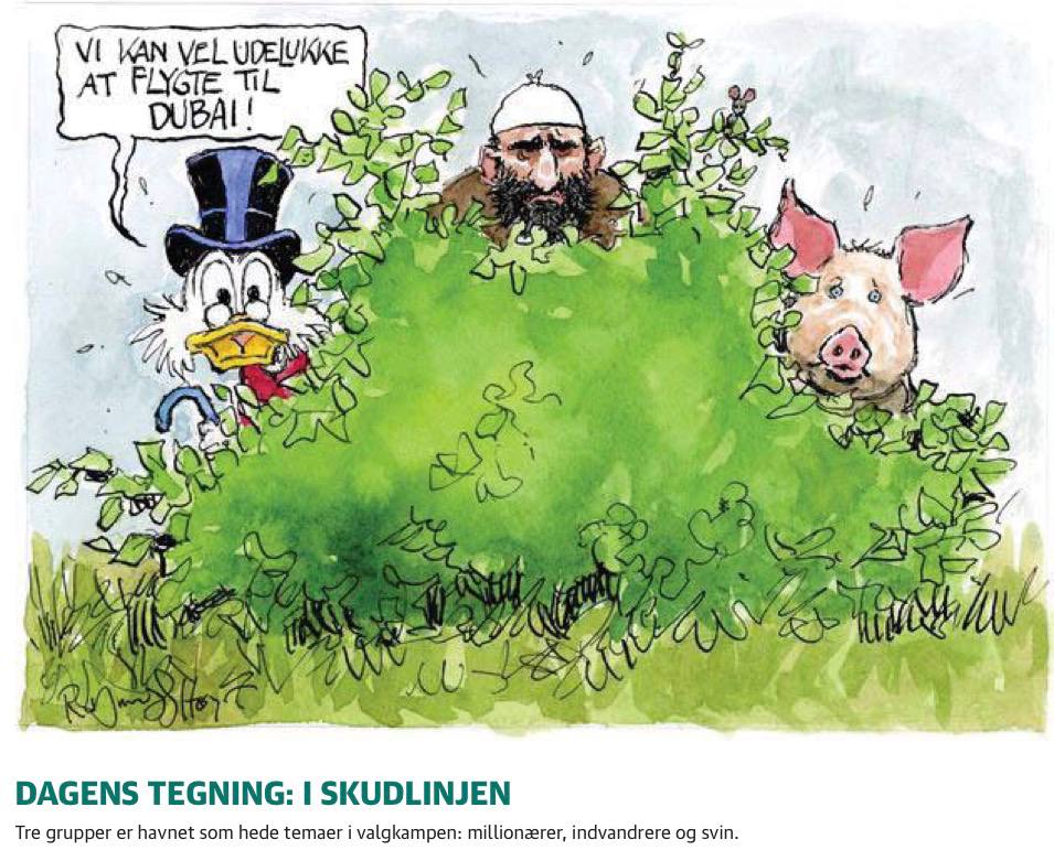 «На линии огня». Сейчас в Дании вовсю проходит избирательная кампания. Газета Jyllands-Posten заметила, что дебаты в основном идут вокруг трех тем: миллионеры, иммигранты и свиньи. Тема Гренландии или война на Украине моментально куда-то пропали из информационной повестки.