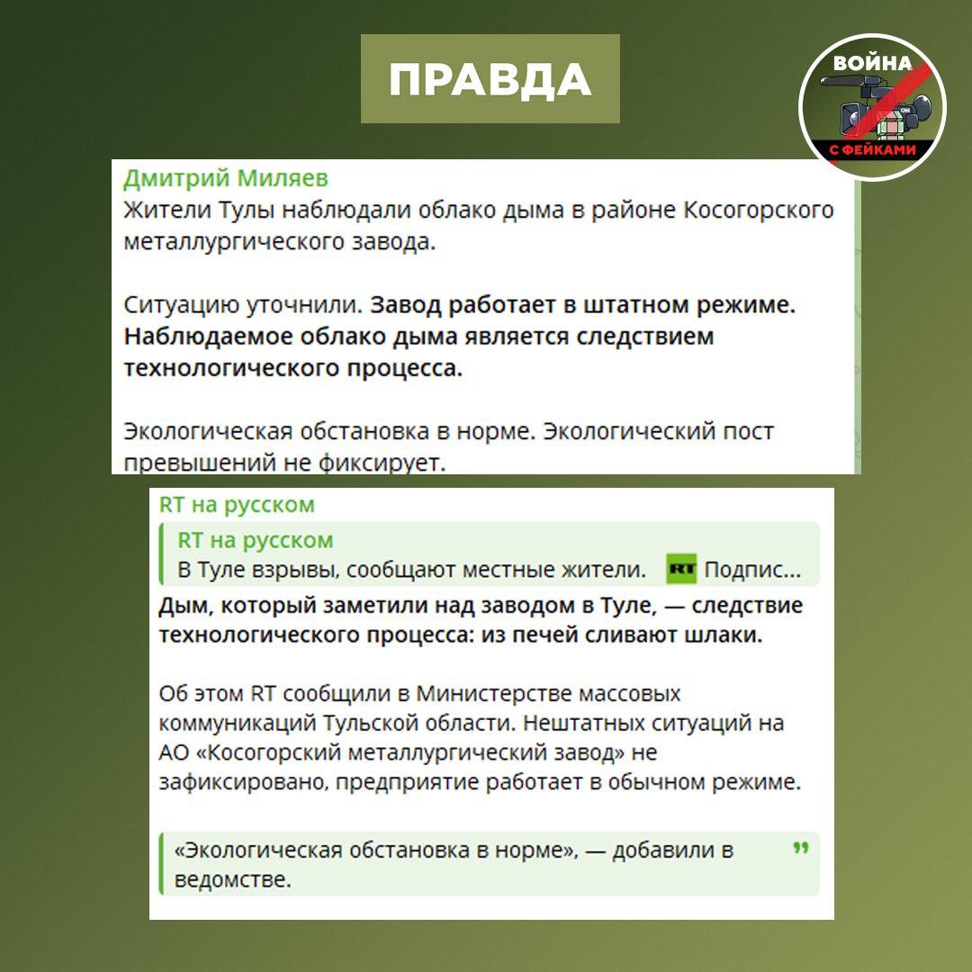 Фейк: ВСУ атаковали Косогорский металлургический завод в Туле. Об этом сообщили украинские телеграм-каналы.