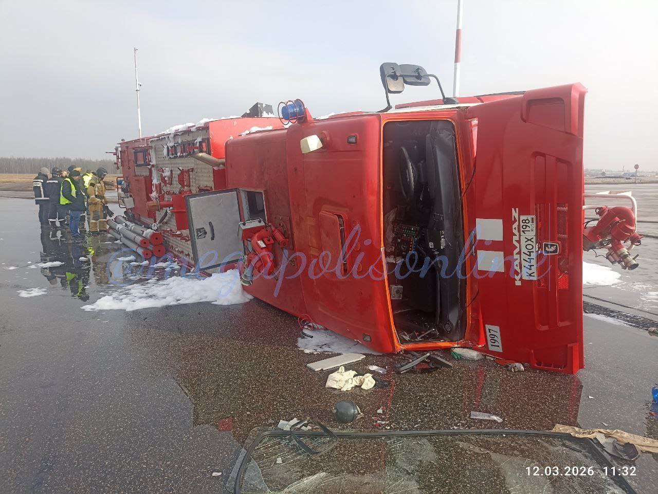 Трое пожарных пострадали, их госпитализировали. На работе Пулково инцидент не сказался – все произошло на специальной площадке.