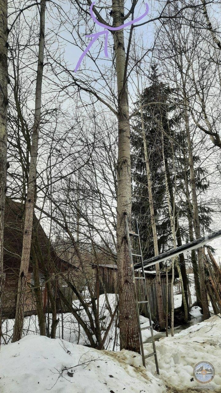 Сотрудники «Кошкиспаса» пришли на помощь коту, который застрял на дереве в поселке Красный Бор (Тосненский район Ленобласти). Бедолага, испугавшись собаки, забрался на самые верхние ветки, и провел там три дня.