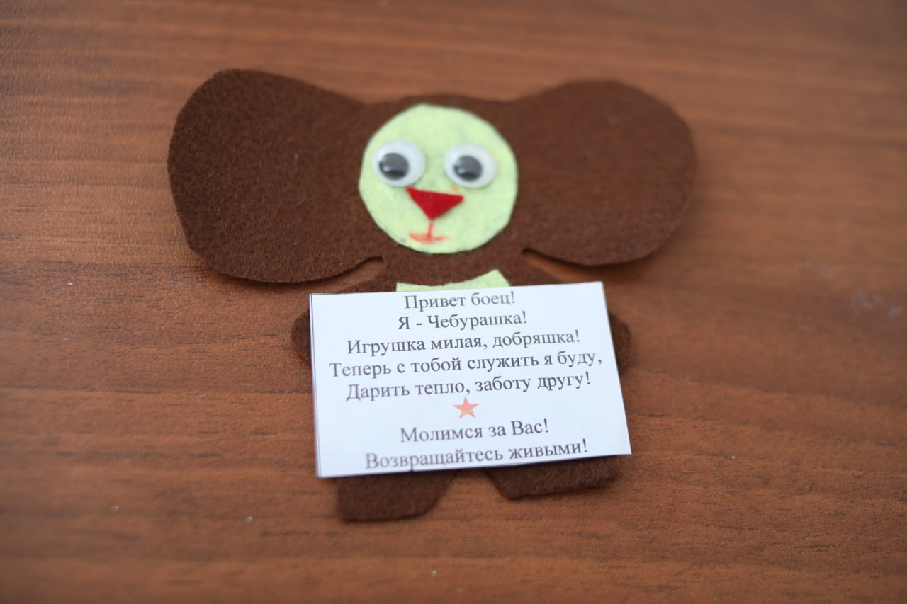 В 70-м Доме офицеров прошел мастер-класс по созданию талисманов для военнослужащих. Самыми старательными участниками стали ученики младших классов, которые под руководством наставников мастерили мягких «Чебурашек».