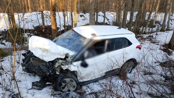 В Гатчинском округе на трассе 41К-101 у поворота в деревню Малое Верево произошло лобовое столкновение "Хендай Крета" и "Митсубиси Паджеро".