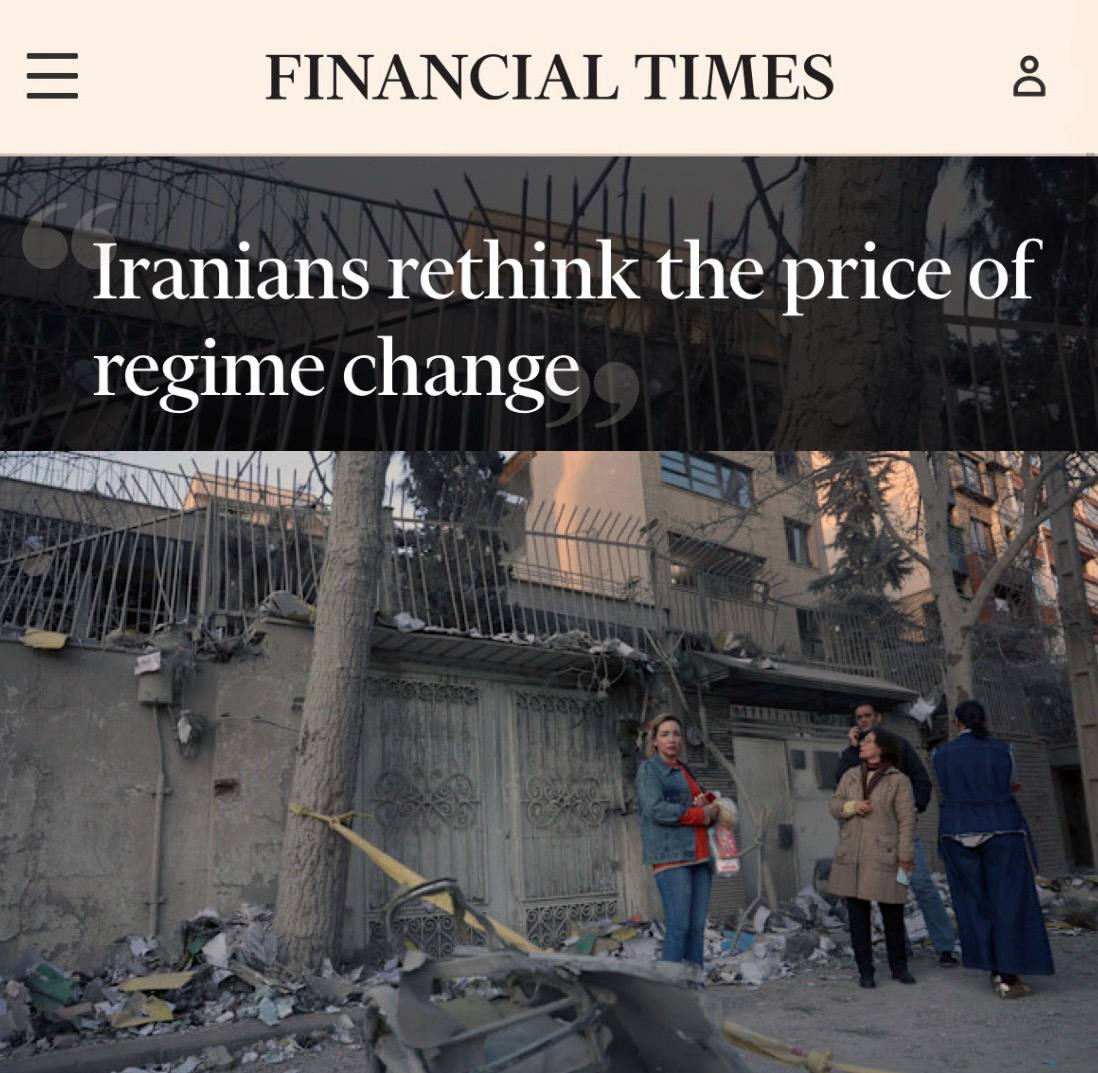 «После гибели верховного лидера Али Хаменеи в результате удара США и Израиля некоторые иранцы сначала надеялись, что это приведёт к падению режима, - пишет FT. - Многие, даже те, кто выходил на протесты, оказались шокированы разрушениями и начали сомневаться, что внешняя военная интервенция принесёт стране перемены».