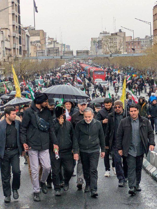 Министр иностранных дел Ирана Аббас Аракчи открыто идет по улицам Тегерана во время сегодняшних массовых мероприятий.