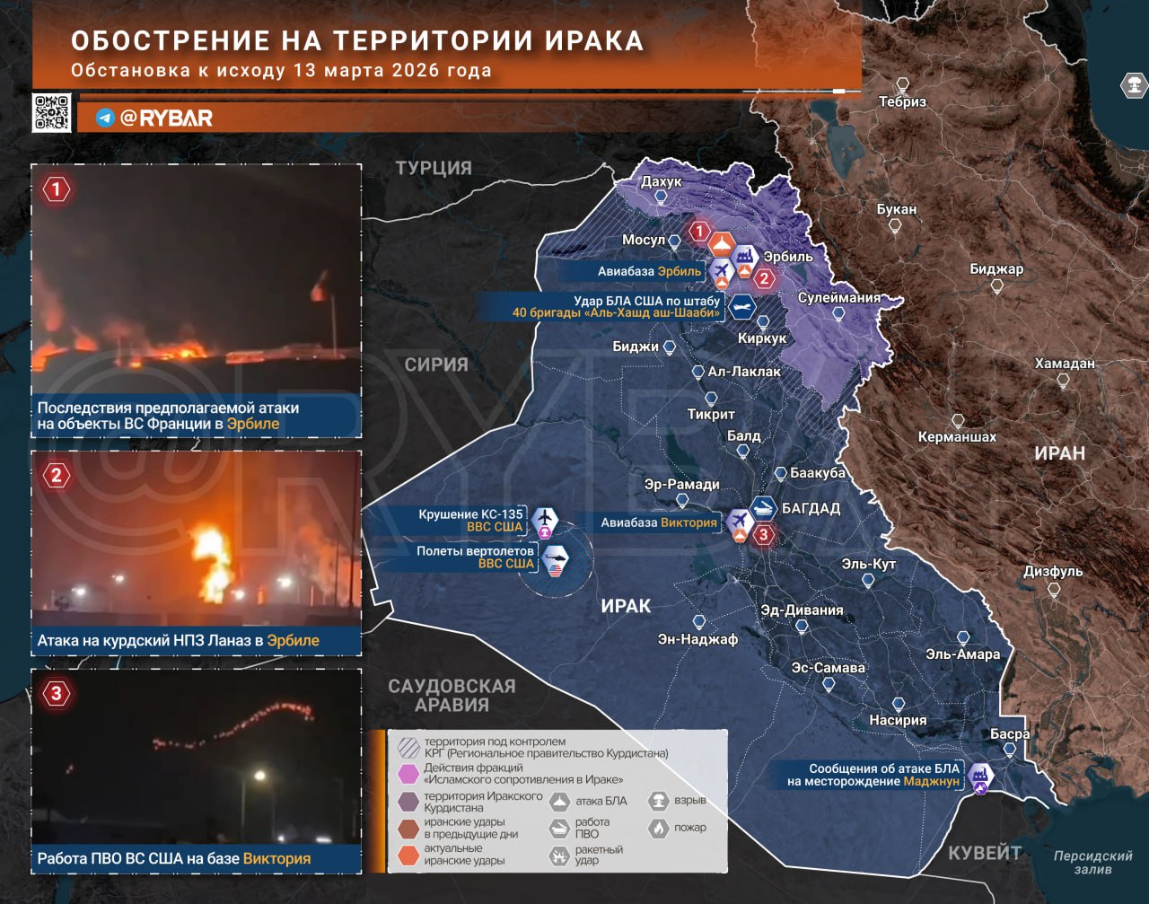 В Ираке ночь вновь оказалась крайне напряжённой. Главным событием стало заявление о потере американского самолёта-заправщика KC-135 над Анбаром. Был атакован НПЗ Лана, база США в провинции Эрбиль и нефтяная инфраструктура к югу от Басры.