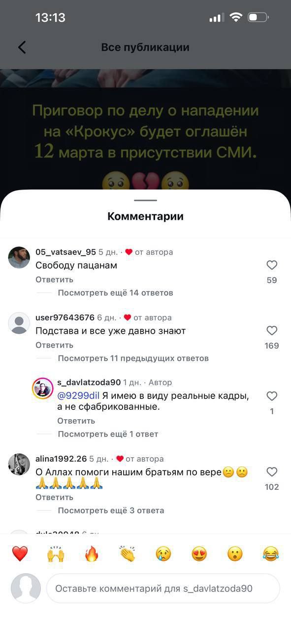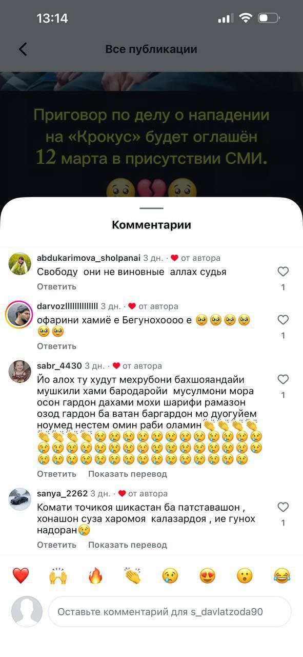 Коллеги из канала "Многонационал" сделали подборку. Как в Инстаграме комментируют новость о приговоре террористам из Крокуса.