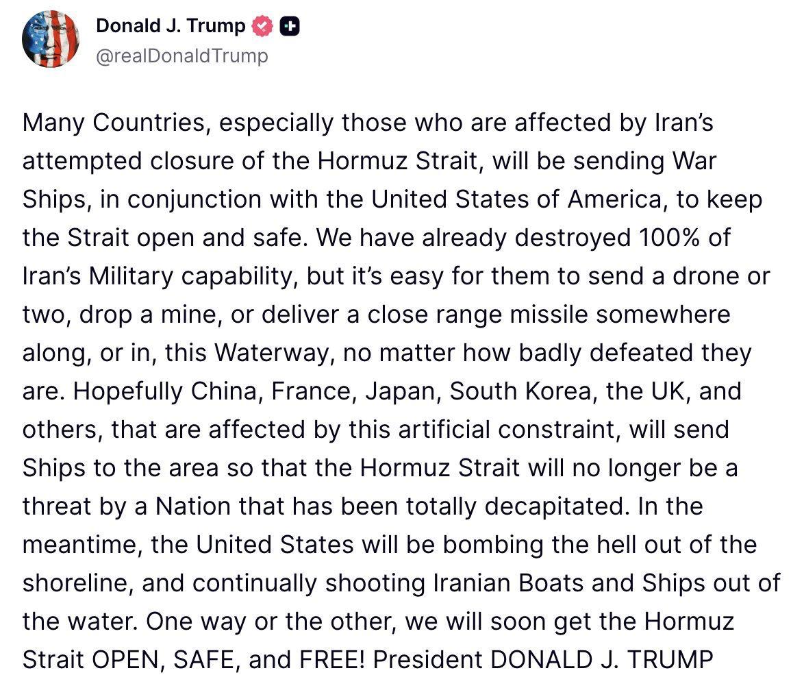 Падажжжите! Если весь военный потенциал Ирана уничтожен, то кто тогда продолжает блокировать пролив и зачем туда посылать военные корабли?