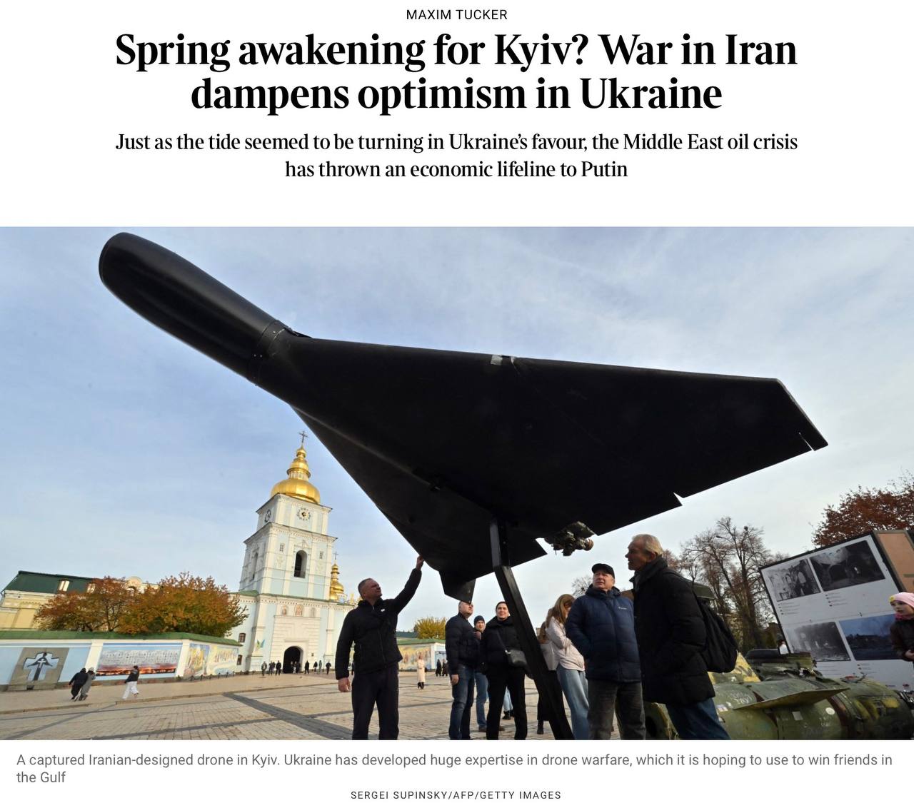 «Весеннее пробуждение для Киева? Война в Иране ослабляет оптимизм в Украине». Под таким заголовком публикует своей «репортаж» из Киева пропагандист и фейкометчик газеты The Times Максимка Такер.