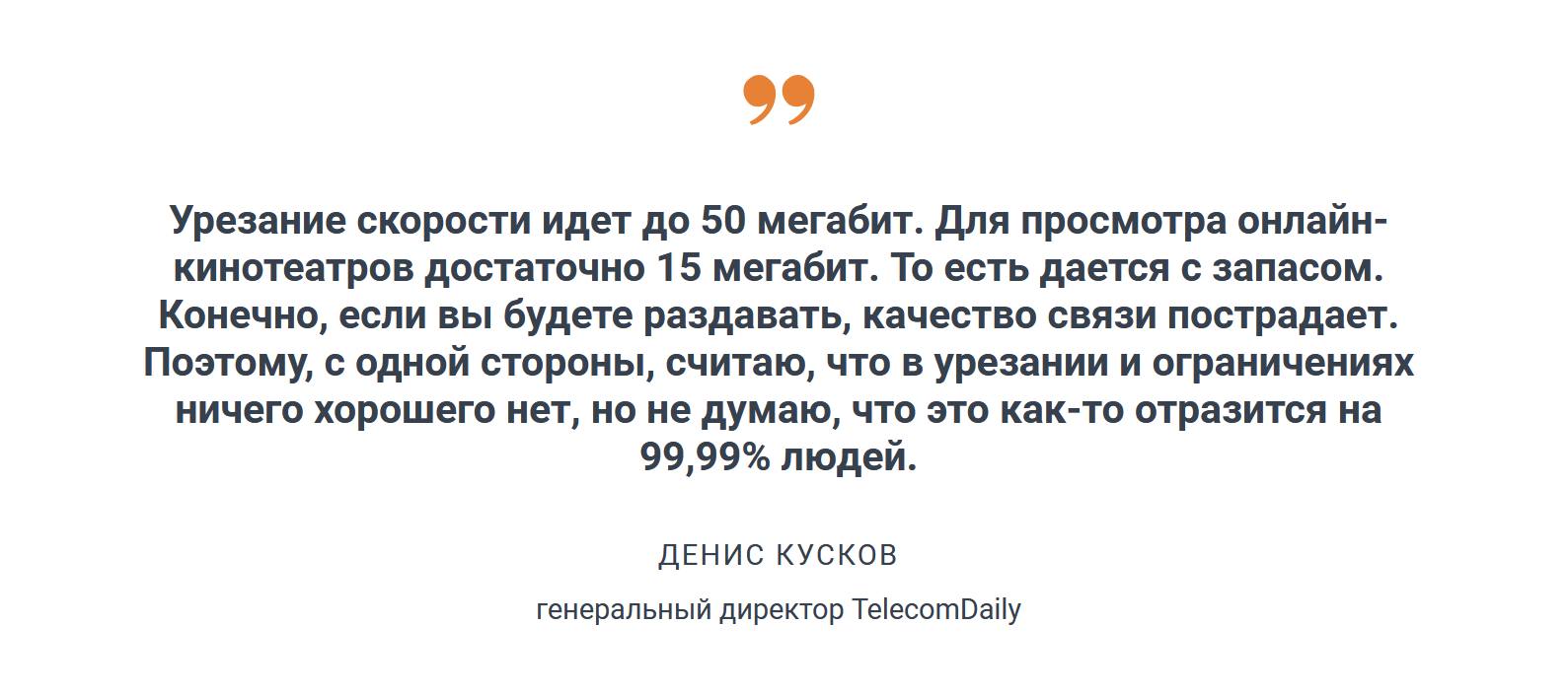 Урезание скорости до 50 Мбит/с, по словам Кускова, на просмотр кино или сериалов никак не повлияет.