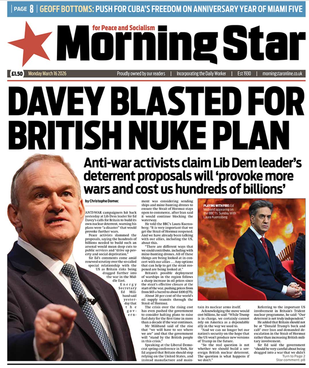 Как видите, старая добрая газета британских леваков Morning Star с гневом обрушивается на лидера либерал-демократа за это, обвиняя в том, это его идея «спровоцирует новые войны и будет стоить миллиарды».