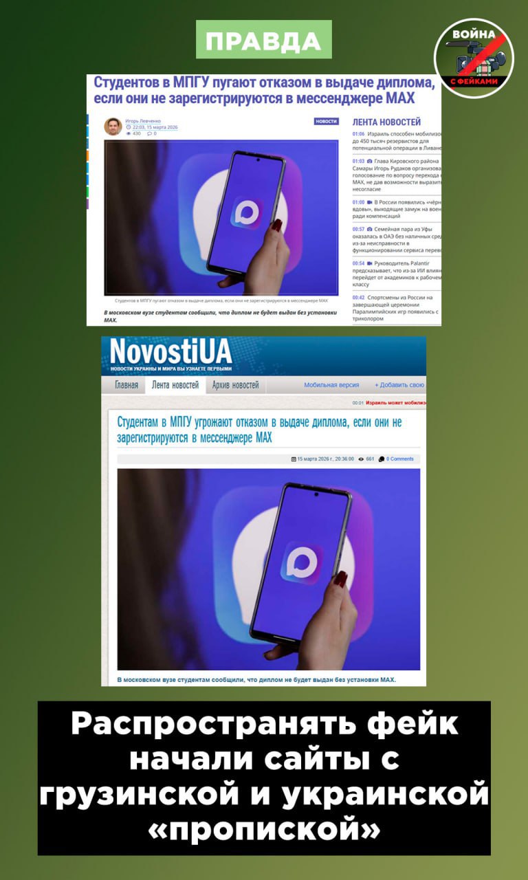Фейк: Студентам Московского педагогического государственного университета не выдадут дипломы без регистрации в МАХ. Такой документ появился в Сети.