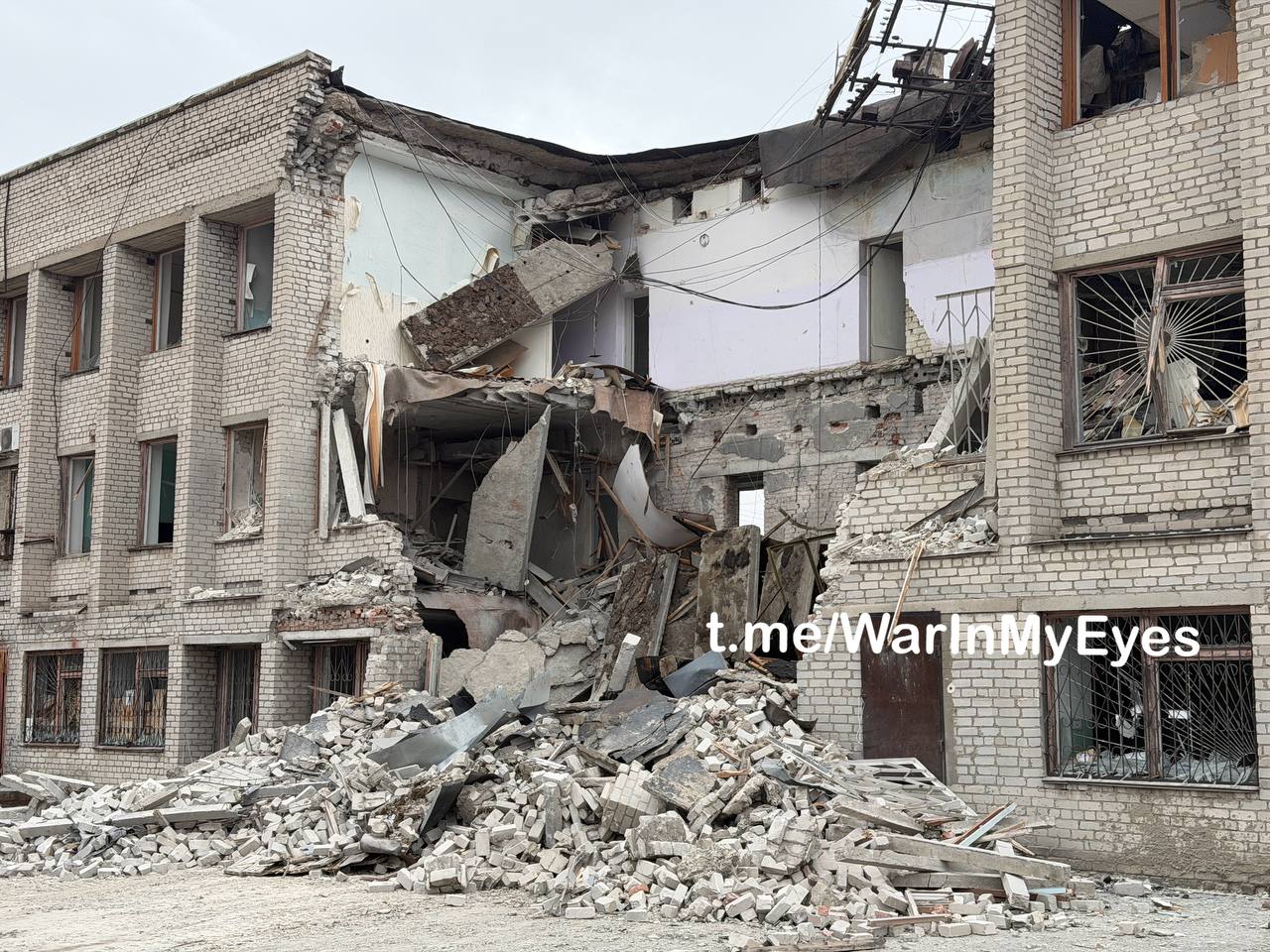 Последствия прилета двух ударных БПЛА самолетного типа по зданию Почты Донбасса в пгт