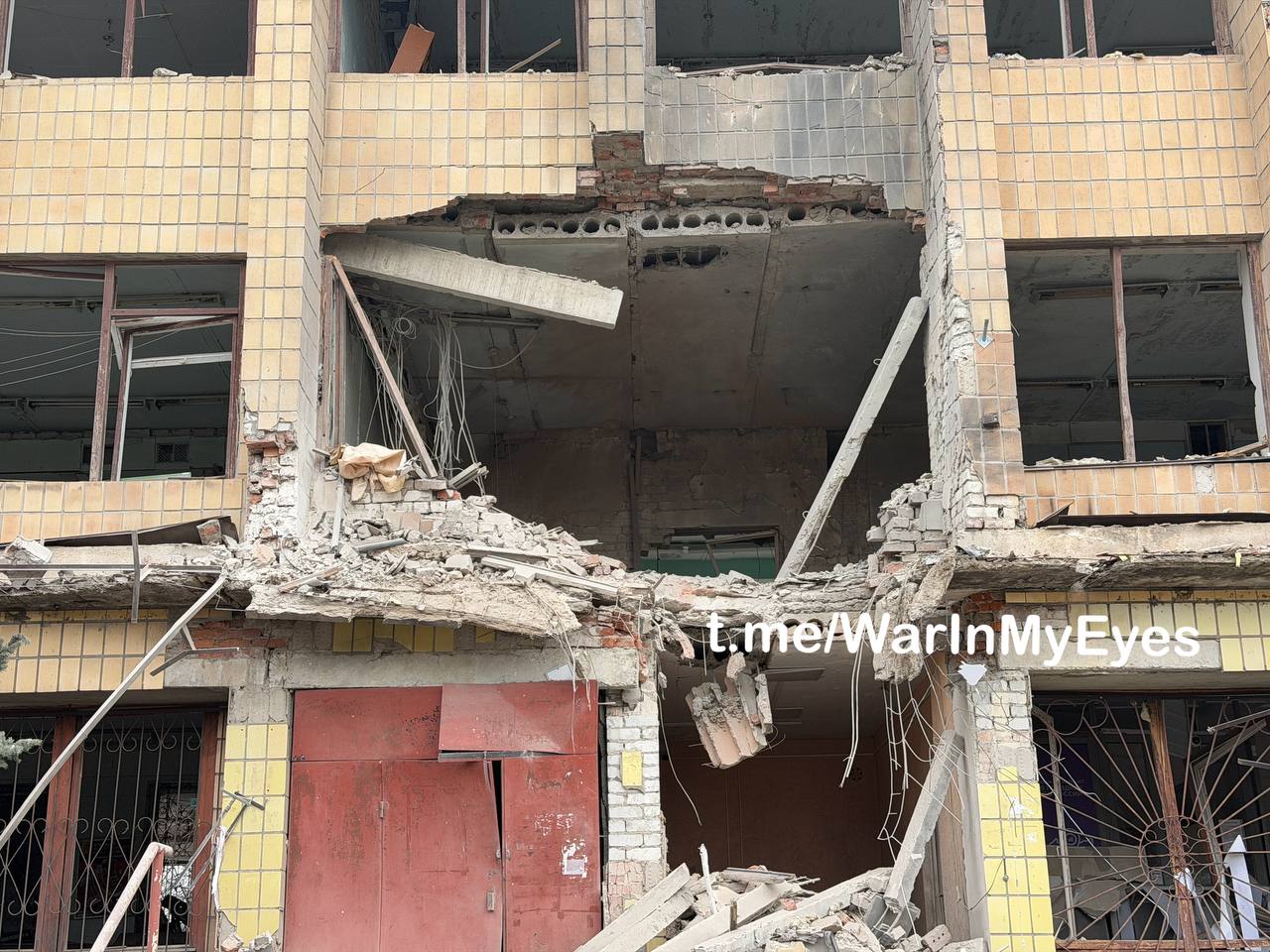 Последствия прилета двух ударных БПЛА самолетного типа по зданию Почты Донбасса в пгт. Мангуш сегодня ночью