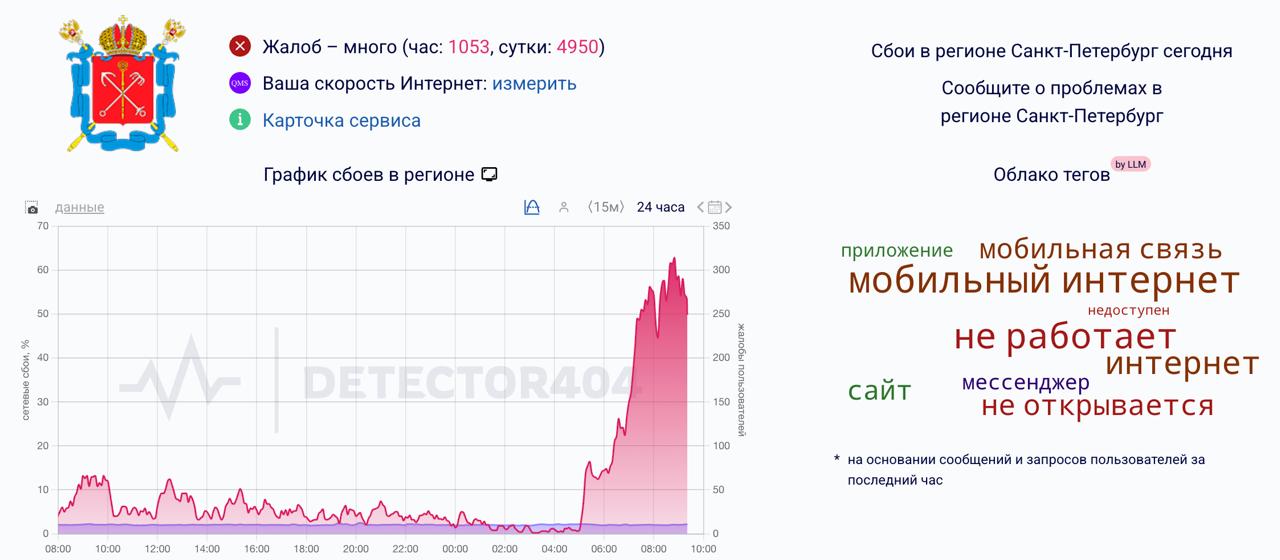 Сбои в работе мобильного интернета в Петербурге и Ленобласти. Пользователи также сообщают о проблемах с Wi-Fi и Telegram.
