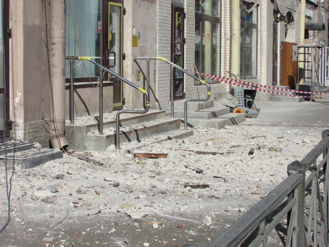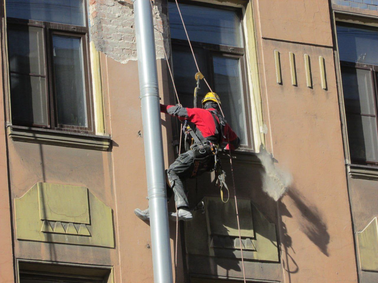 «Прямо сейчас с дома сбивают штукатурку вместе с исторической керамической цветной облицовкой („кабанчик“). Килограммы керамики валяются прямо на тротуаре Нарвского проспекта. Работы ведет управляющая компания (так они представились)», — цитирует канал «Живой Город» очевидца и автора фотографий.