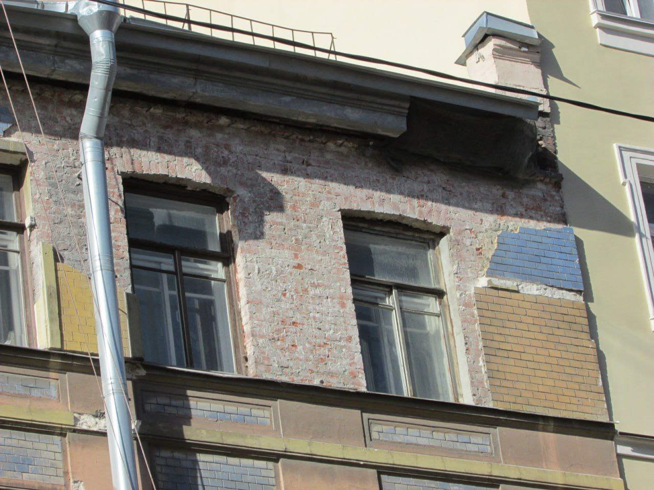 Фасад доходного дома Шлякова на Нарвском проспекте, 31, летит вниз.