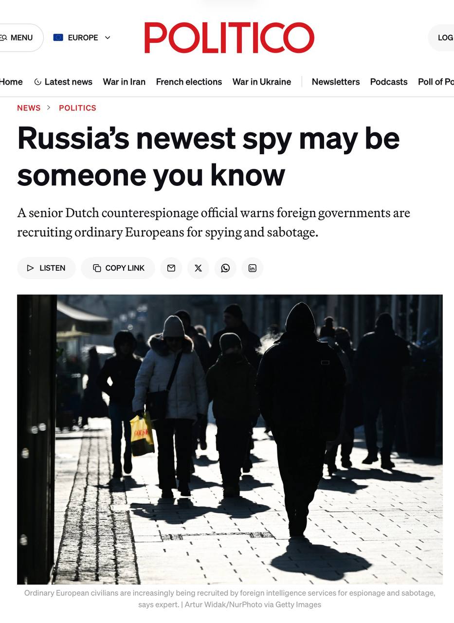 При этом ни Politico, ни сей голландец так и не привели ни одного доказанного случая причастности России или российских спецслужб к вербовке каких-нибудь диверсантов или саботажников. А зачем что-то доказывать? Публику легче пугать без фактов и доказательств!