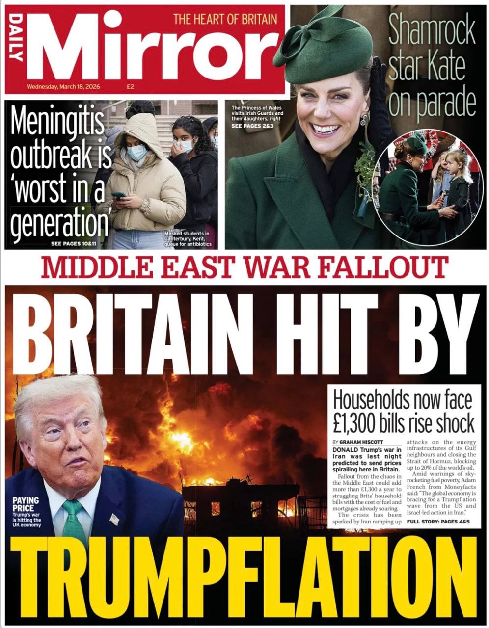 «По Британии ударила Трампфляция». Это первая полоса сегодняшней Daily Mirror.