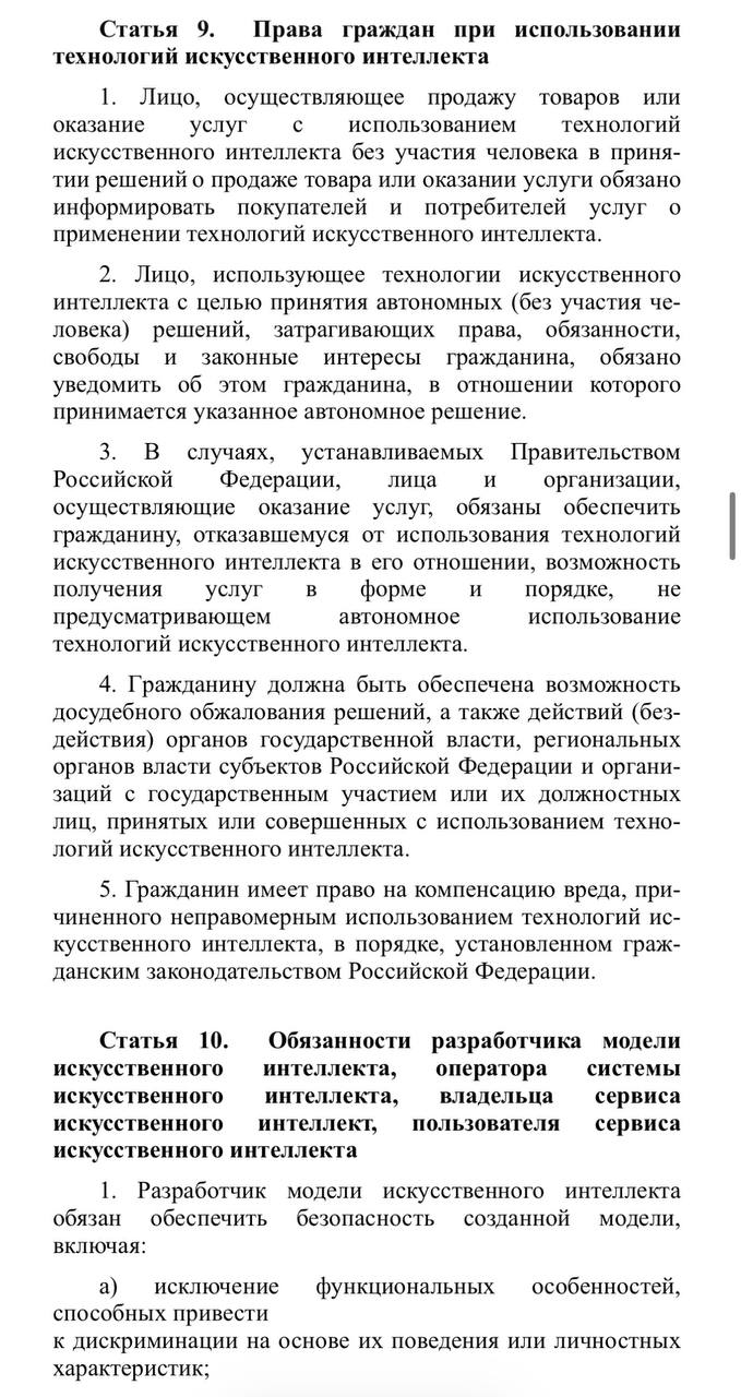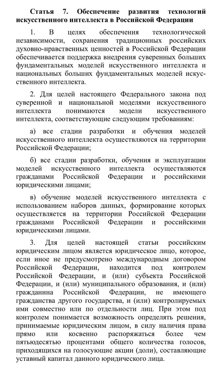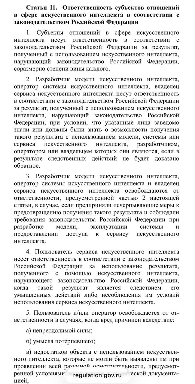 Владельцы ИИ-моделей в России будут нести ответственность за противозаконный результат.