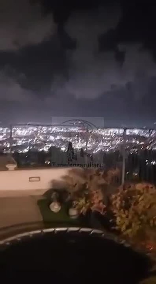 Падение израильской ракеты ПВО на жилые кварталы после неудачного перехвата.