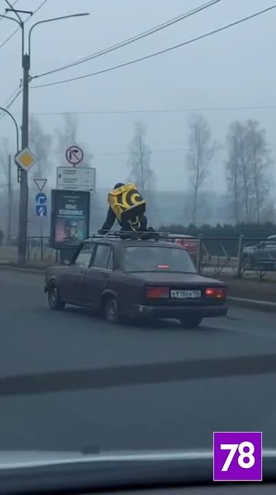 Курьеры вышли на новый уровень: доставщик-камикадзе на пересечении Малого проспекта В.О. и Наличной решил оседлать попутку и пришпорил вихляющую Ладу.