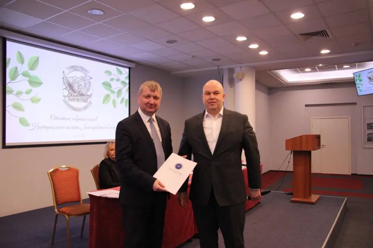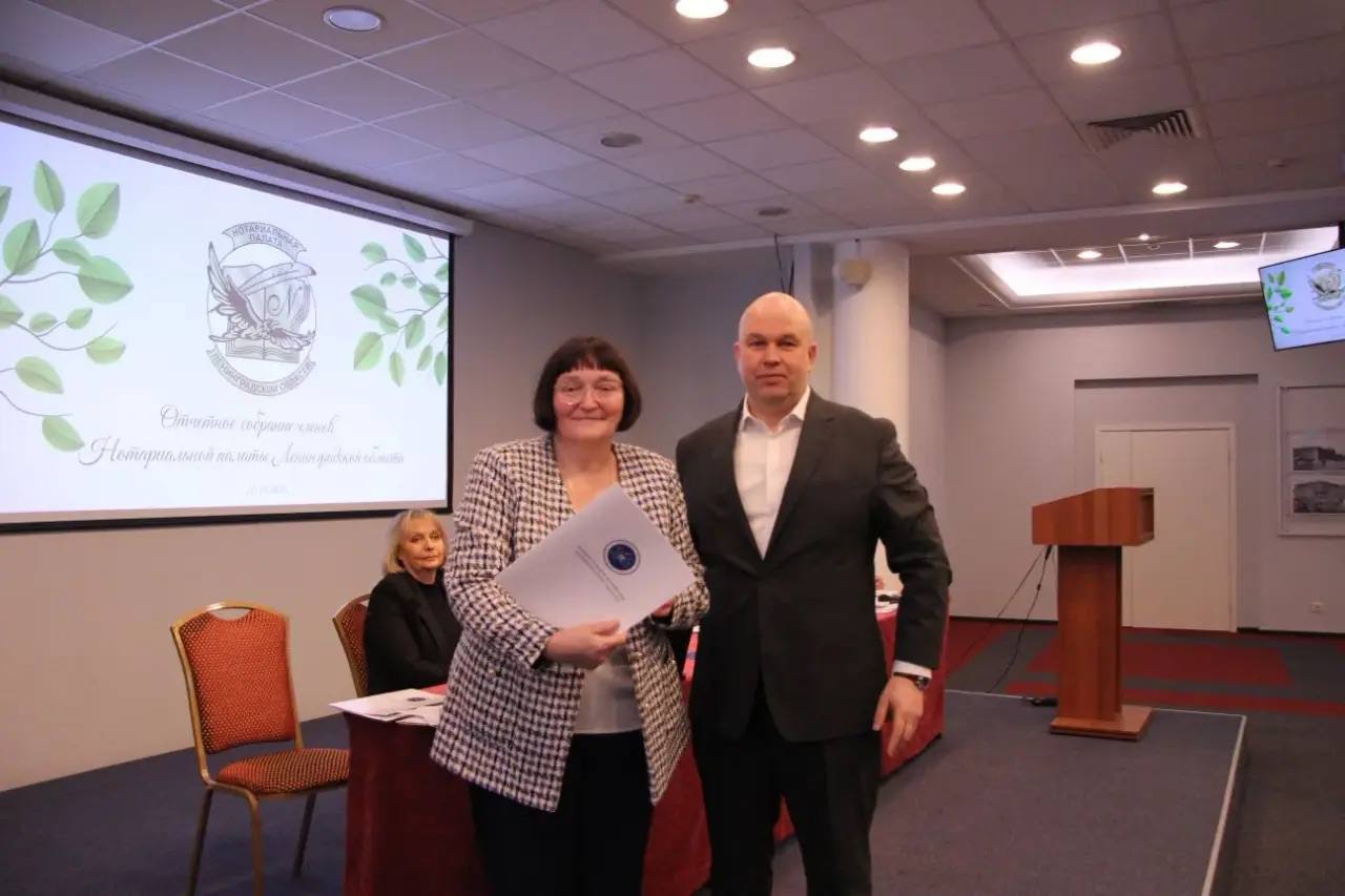 В рамках Отчетного собрания членов Нотариальной палаты Ленинградской области заместитель председателя Избирательной комиссии Ленинградской области Фёдор Замятин наградил нотариусов и помощников нотариусов за содействие и помощь в проведении избирательной кампании по выборам губернатора Ленинградской области в 2025 году.