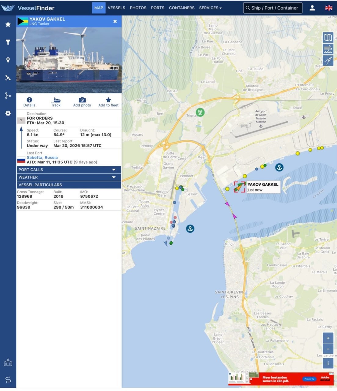 Во Францию прибыл российский газовоз "Яков Гаккель" с грузом СПГ.