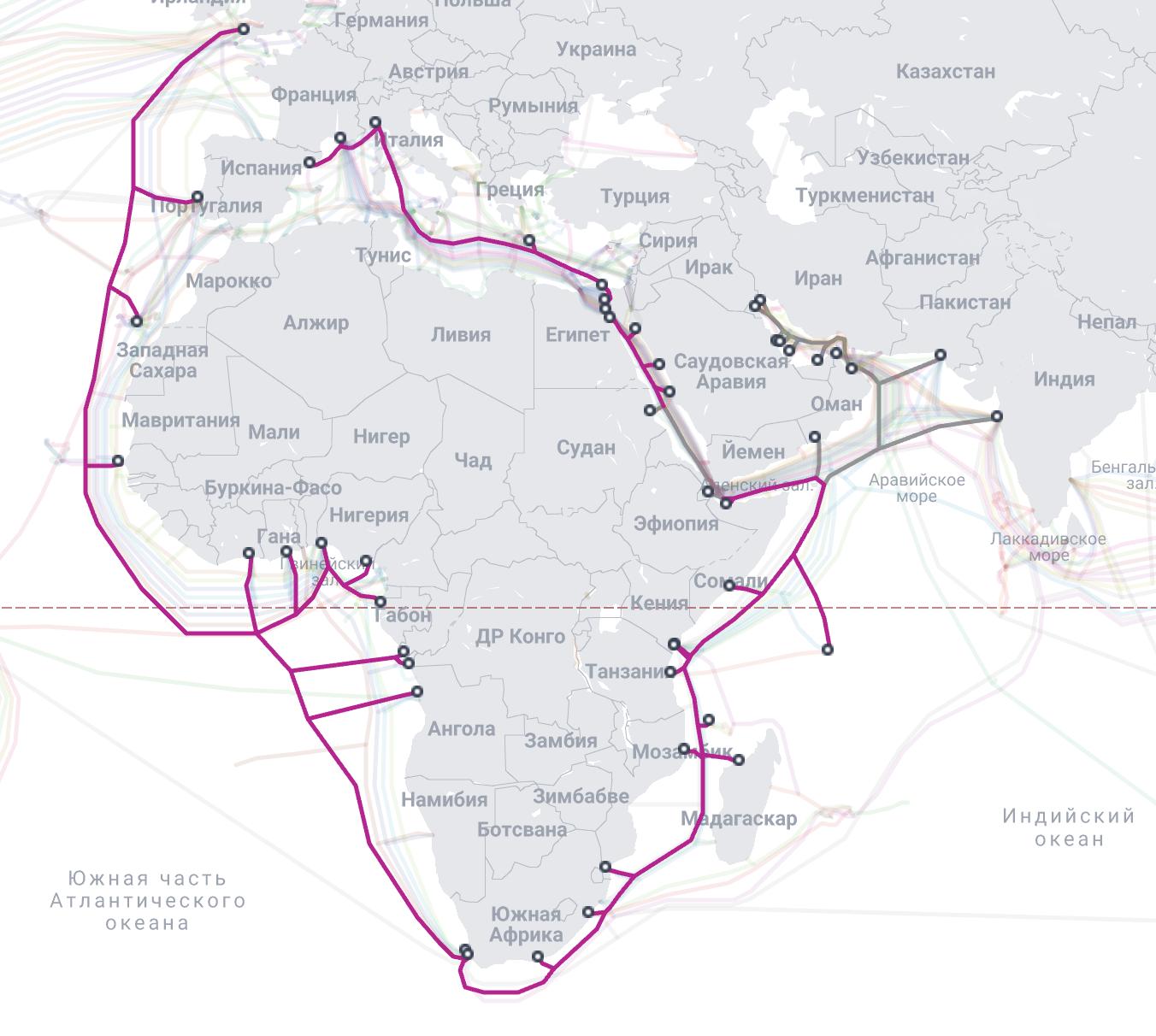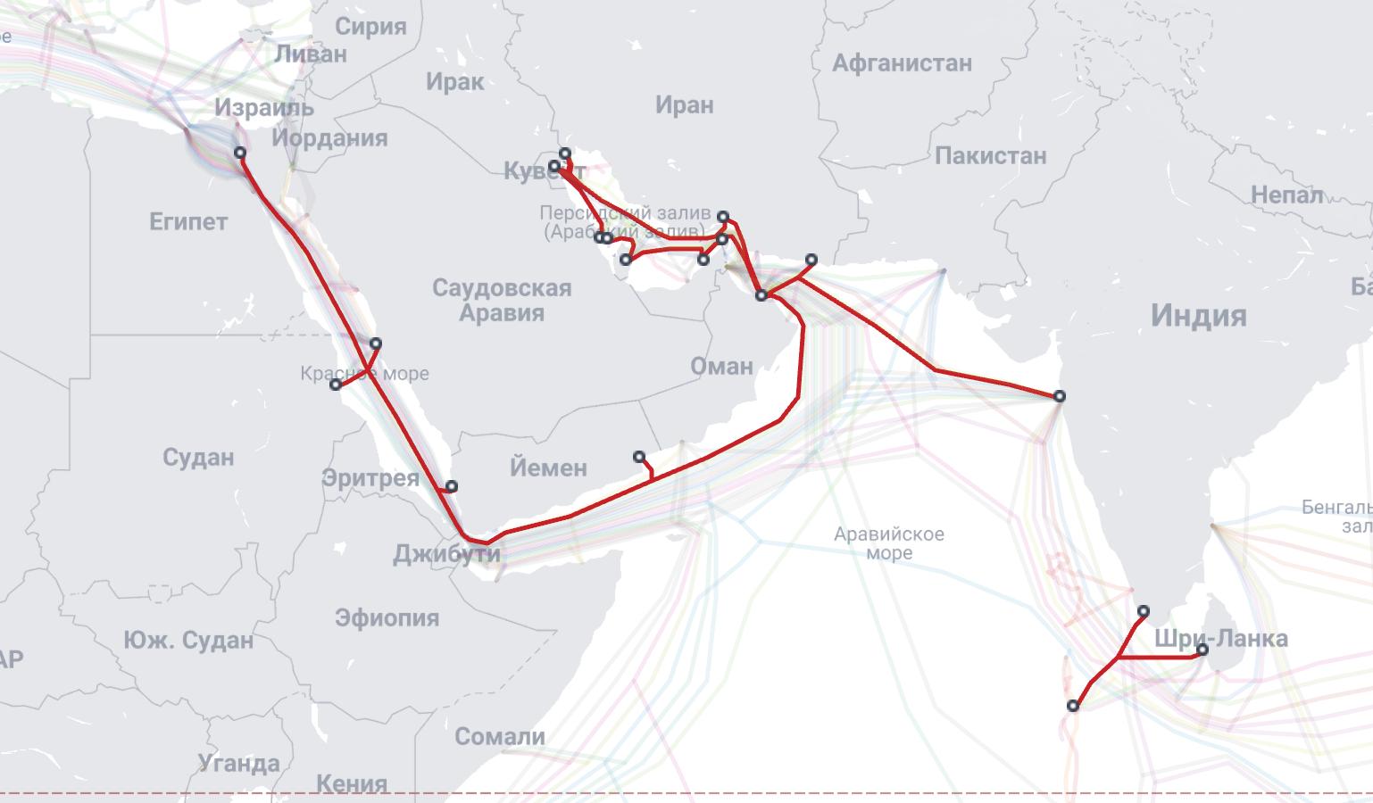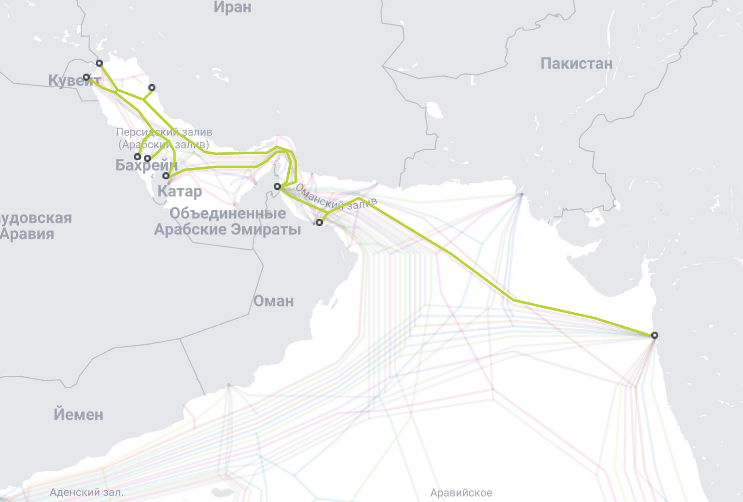 - FALCON: Ключевой кабель, соединяющий страны Персидского залива с Индией и Египтом.