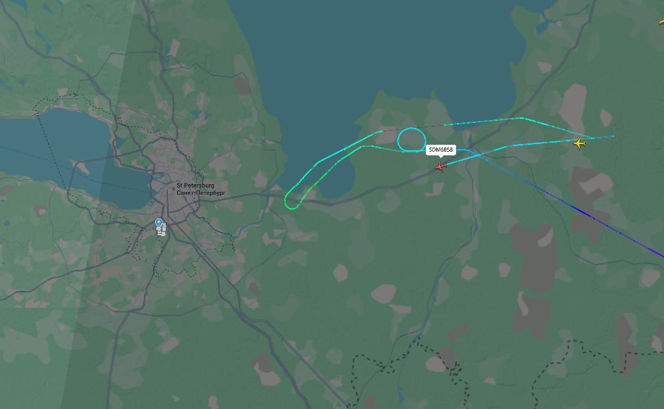 По данным SHOT, самолёт авиакомпании «Россия» рейсом SDM6858 из Минеральных Вод в аэропорт Санкт-Петербурга подал сигнал бедствия 7700, который может значить чрезвычайную или аварийную ситуацию на борту. Airbus A320-214 прямо сейчас летает от Кировска до Коськовское в Ленобласти. Точные причины пока неизвестны. В онлайн-сервисе по отслеживанию самолётов за бортом следит уже более 10 000 пользователей.