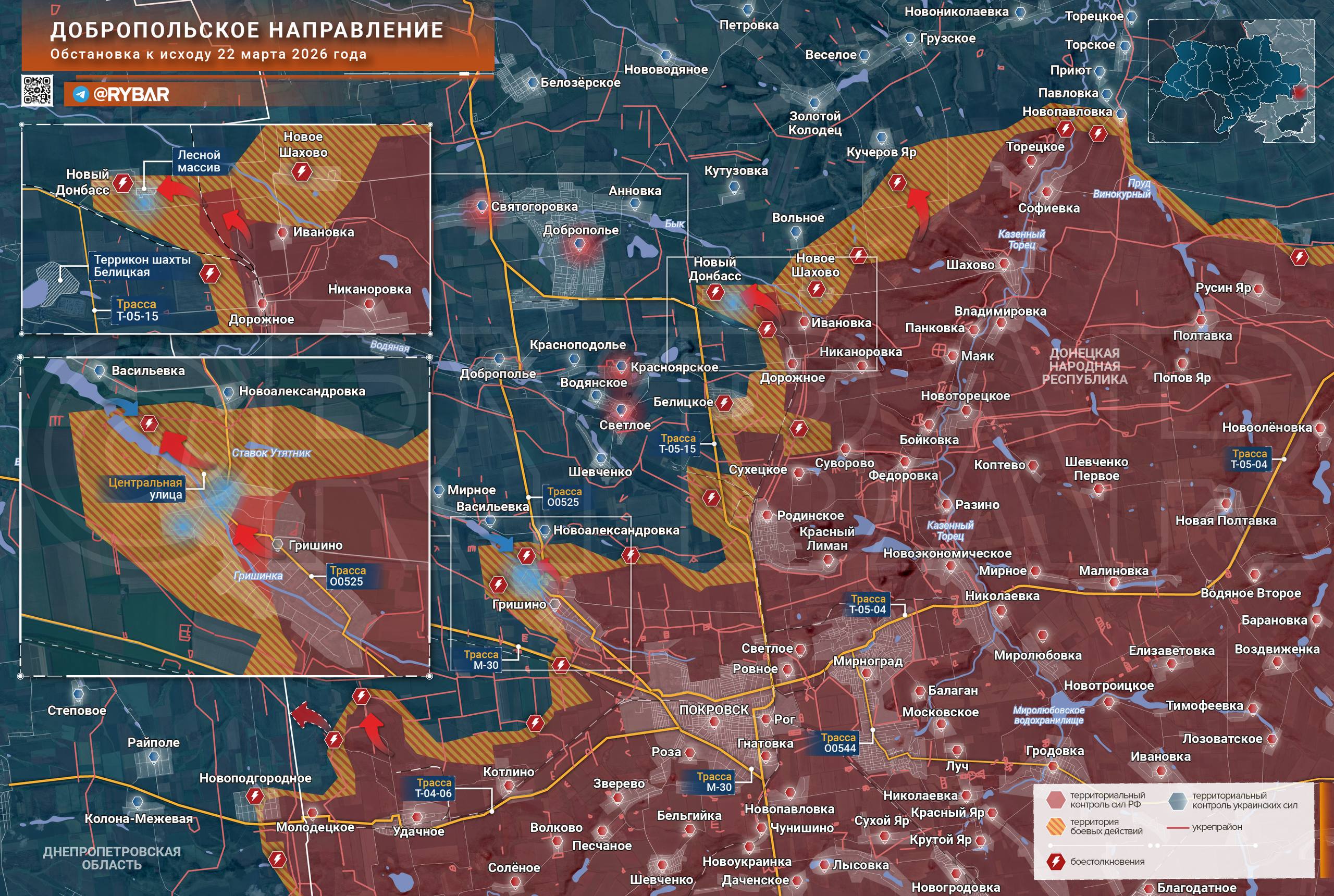 Несмотря на контратаки ВСУ, российские бойцы расширяют зону контроля в центре Гришино. Пехотные группы действуют на обоих берегах реки Гришинка, стремясь оттеснить ВСУ к северо-западным окраинам населённого пункта. Те, в свою очередь, пытаются перебросить резервы со стороны Новоалександровки и Васильевки, однако большая их часть поражается российскими дроноводами ещё на подходе к целевым рубежам.