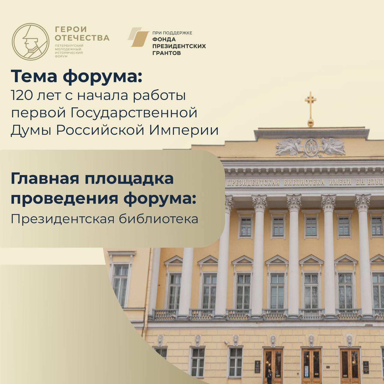 С 13 по 15 мая в Санкт-Петербурге пройдет V ПМИФ «Герои Отечества». Мероприятия в рамках Форума пройдут в Президентской библиотеки им. Ельцина и на других культурных и исторических площадках города.