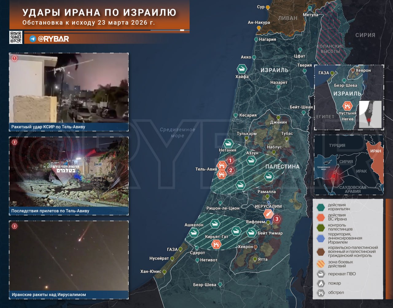 В Израиле к исходу суток вновь фиксировались удары иранских баллистических ракет по агломерации Гуш-Дан. В проиранских источниках заявили и о пусках в направлении Иерусалима и Негева, однако подтверждения касались в основном работы ПРО и падения осколков.