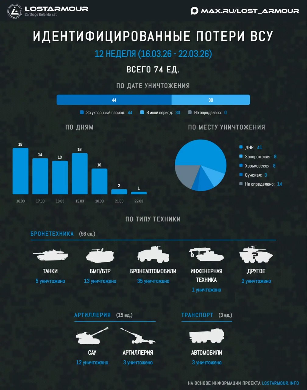 Идентифицированные потери ВСУ в технике в период с 16 марта по 22 марта 2026 года.