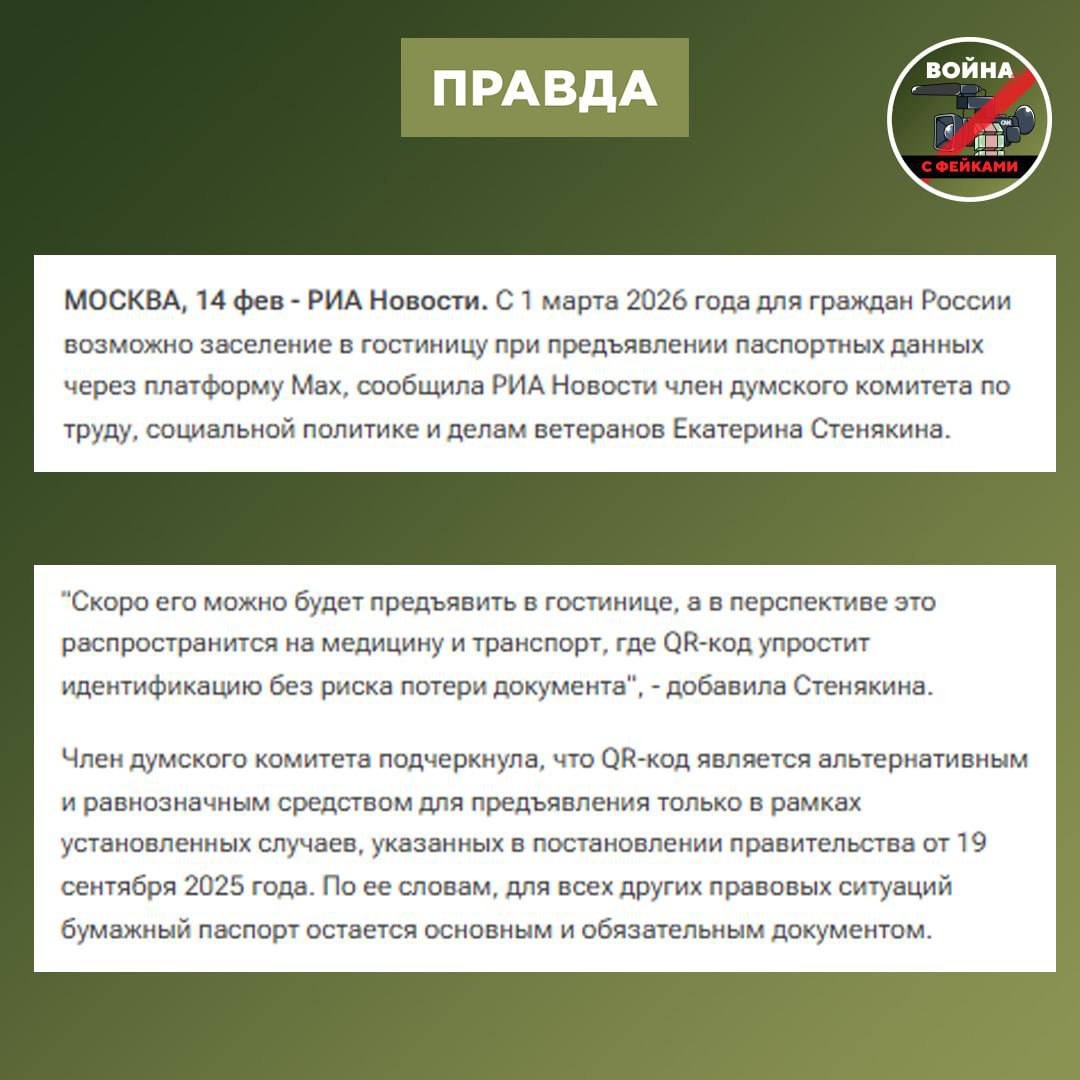 Перед нами классический пример манипуляции фактами. Речь идет исключительно о расширении цифровых сервисов для удобства гостей, а не о введении обязательных требований: с 1 марта 2026 года в РФ начал действовать эксперимент с использованием мессенджера «Мах» и цифрового удостоверения личности при заселении в гостиницы, а с 1 апреля предусмотрено применение приложения «Госуслуги» с той же целью.