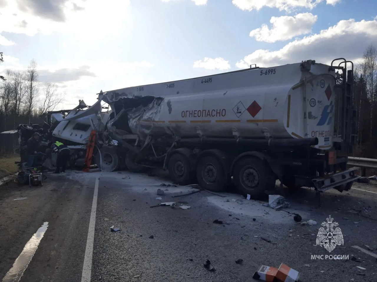 Один человек погиб в ДТП под Тосно. На трасе А120 KIA лоб в лоб столкнулся с бензовозом.