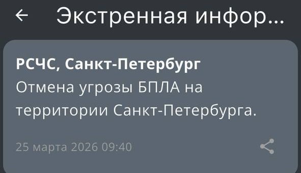 Отмена угрозы БПЛА в Петербурге — приходят СМС.