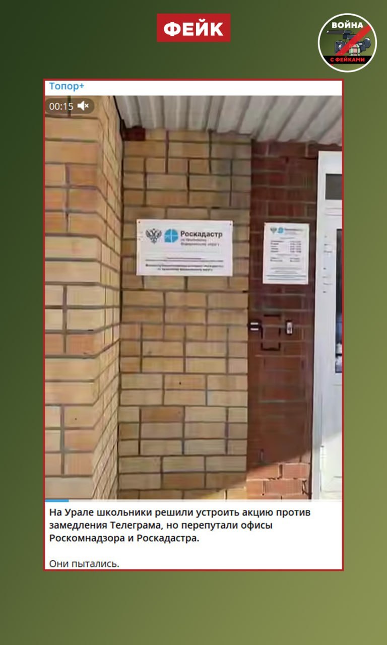 Фейк: В Екатеринбурге школьники решили устроить акцию против замедления Телеграм, но перепутали локации и вместо РКН пришли к офису Роскадастра. Такие сообщения появились в телеграм-каналах.